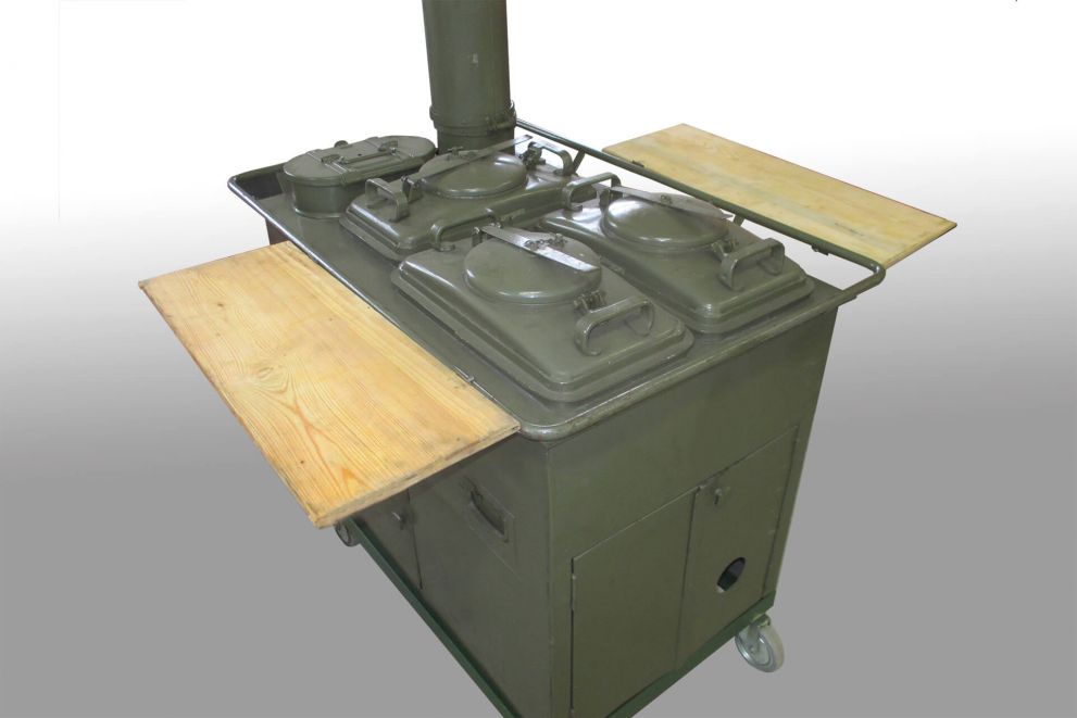 Die Feldküche besitzt 3 Kessel à 25 l und 1 Warmhaltebehälter à 10 l. Sämtliche Kessel und der Behälter sind herausnehmbar. Die Beheizung erfolgt entweder mit Holz oder Kohle mit dem als Zubehör zu liefernden Feuerrost oder mit dem als Zubehör zu liefernden Kraftstoffbrenner. Die Gulaschkanone lässt sich (mit leeren Kesseln) von 2 Personen tragen. Seitlich im Gerät befindet sich Stauraum für Zubehör. Die Deckel der Kessel dichten über einen Konus (keine Gummidichtung!) ab. Die Feldküche kann auf Grund ihres geringen Eigengewichts von ca. 350 kg mit fast allen PKW gezogen und von einer Person bequem bewegt werden.