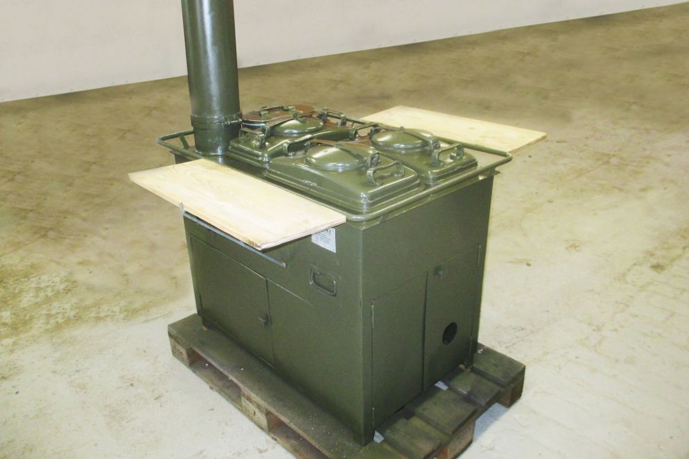 Rost für die Holzfeuerung, Propanbrenner mit Zündsicherung und Piezozündung, Kraftstoffbrenner, offene Pfanne mit Deckel, Blinddeckel, seitentische Windhaube