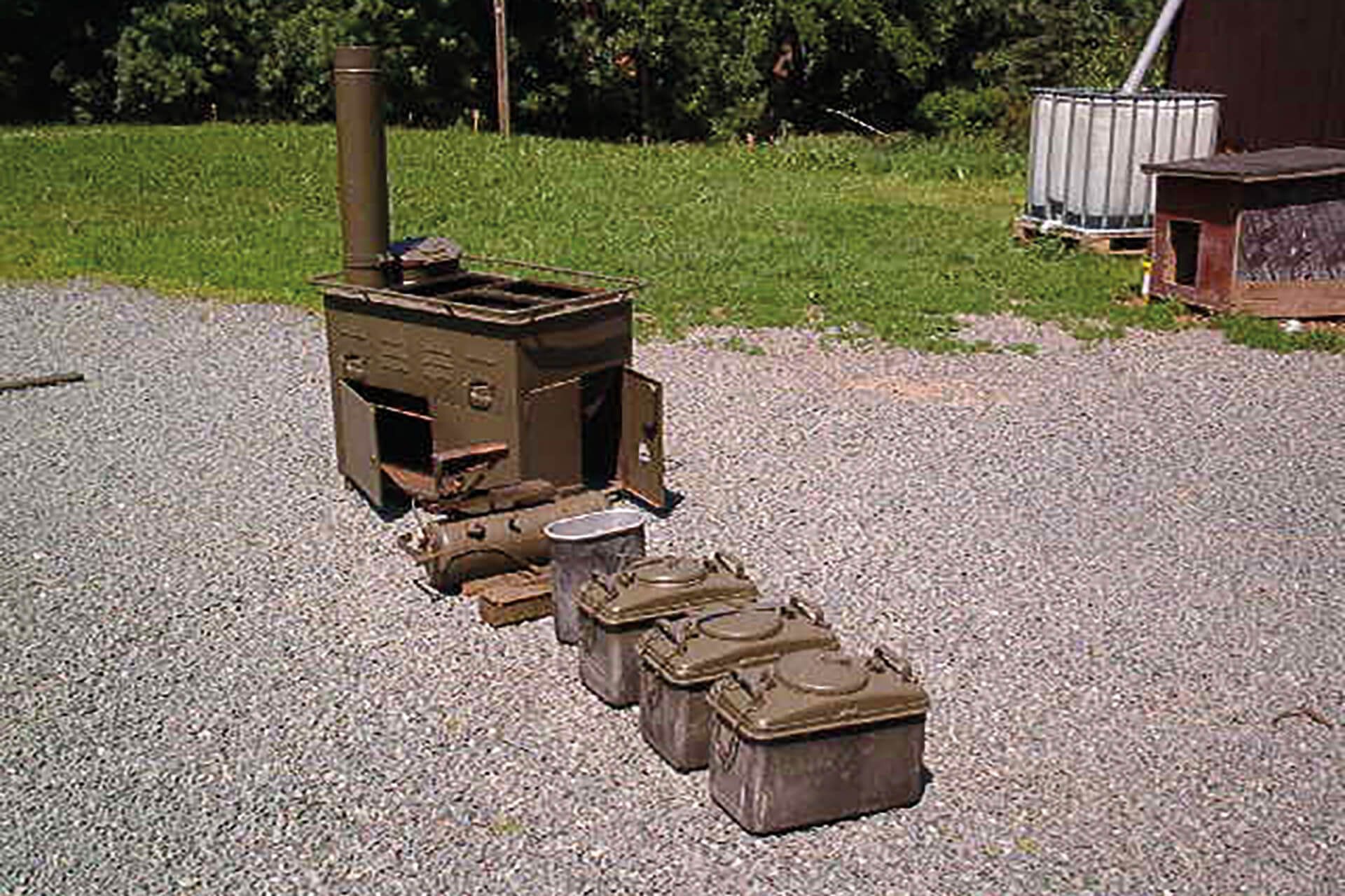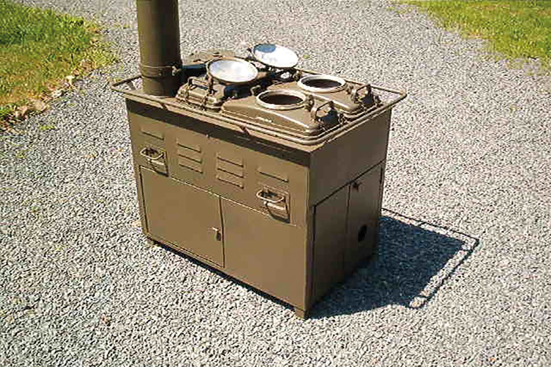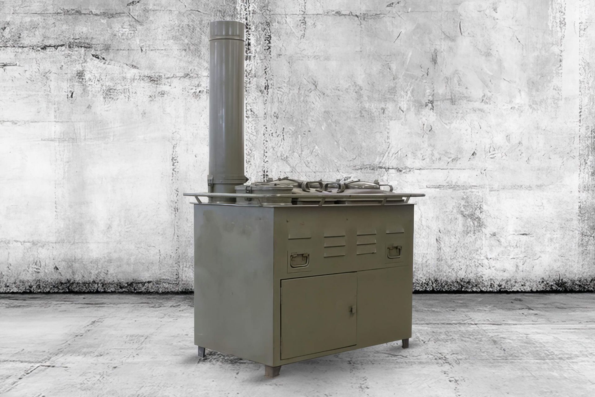 Rost für die Holzfeuerung, Propanbrenner mit Zündsicherung und Piezozündung, Kraftstoffbrenner, offene Pfanne mit Deckel, Blinddeckel, seitentische Windhaube